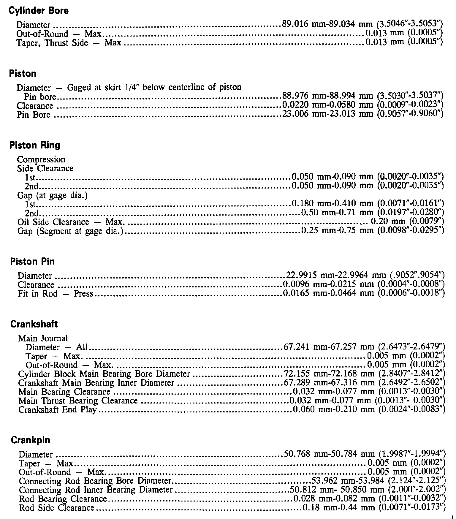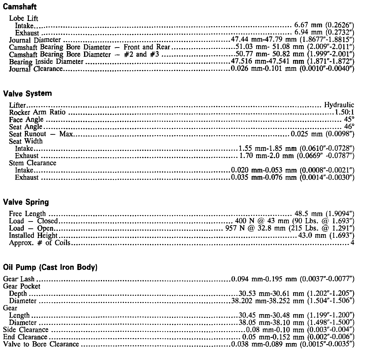 Continued Engine Specifications:
