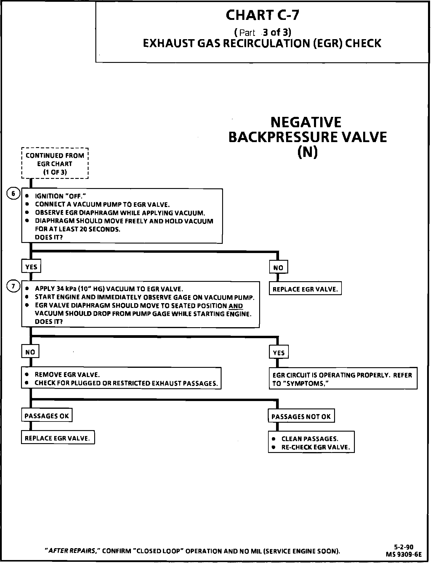 6. The remaining tests check the ability of the EGR to interact with the exhaust system. This system uses a NEGATIVE BACKPRESSURE EGR VALVE which should hold vacuum with the engine off.