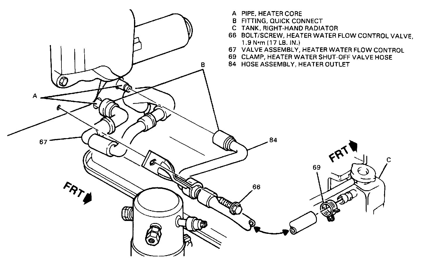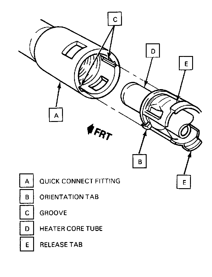 3. Heater inlet and outlet pipe quick connect fittings from heater core tubes.