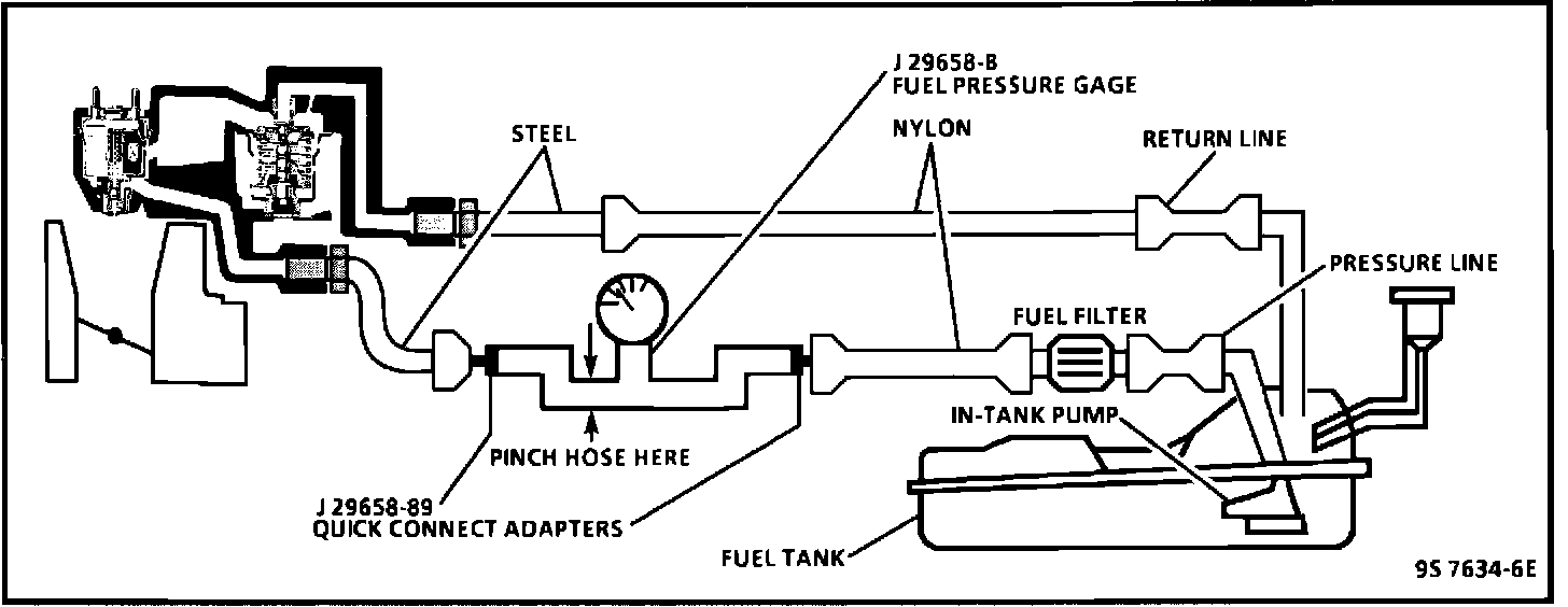 NOTE: DO NOT restrict the fuel return line. This may damage the fuel pressure regulator.