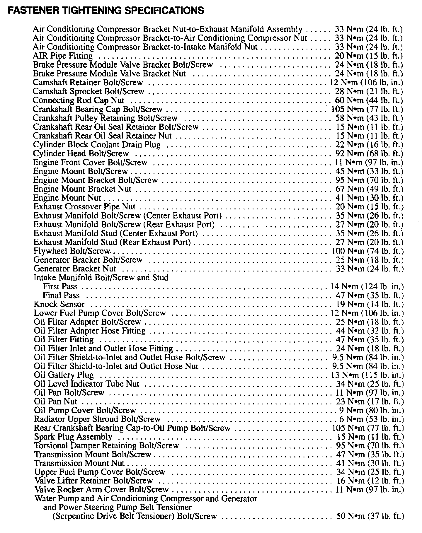 Torque Specifications:
