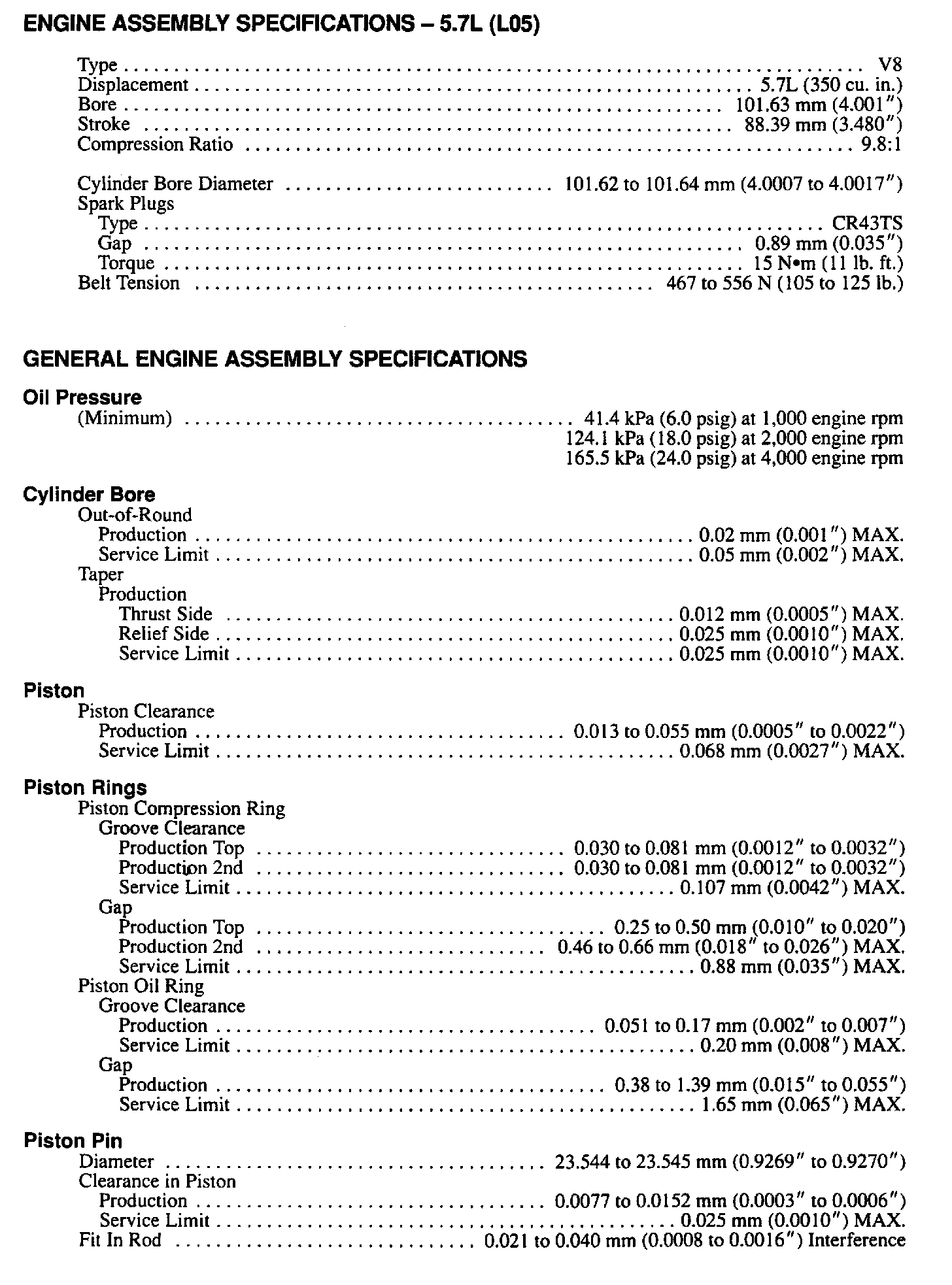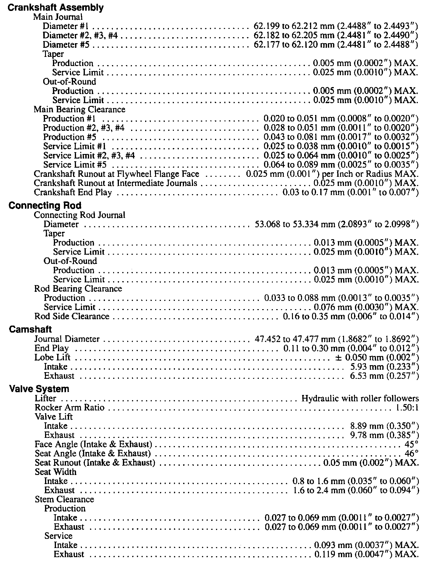 Continued Engine Specifications: