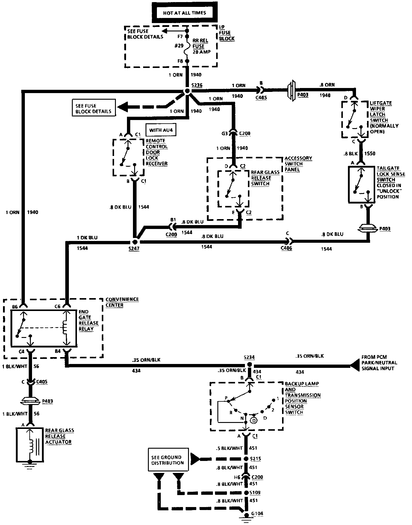 Rear Compartment/Rear Window Release: Rear Glass: