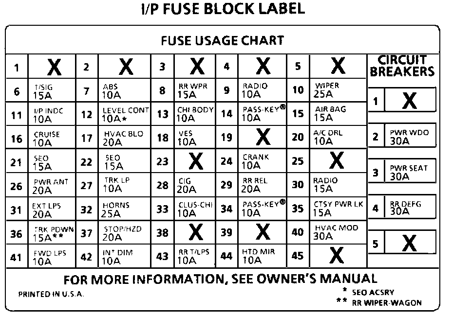 Fuse Data: I/P Fuse Block Label: