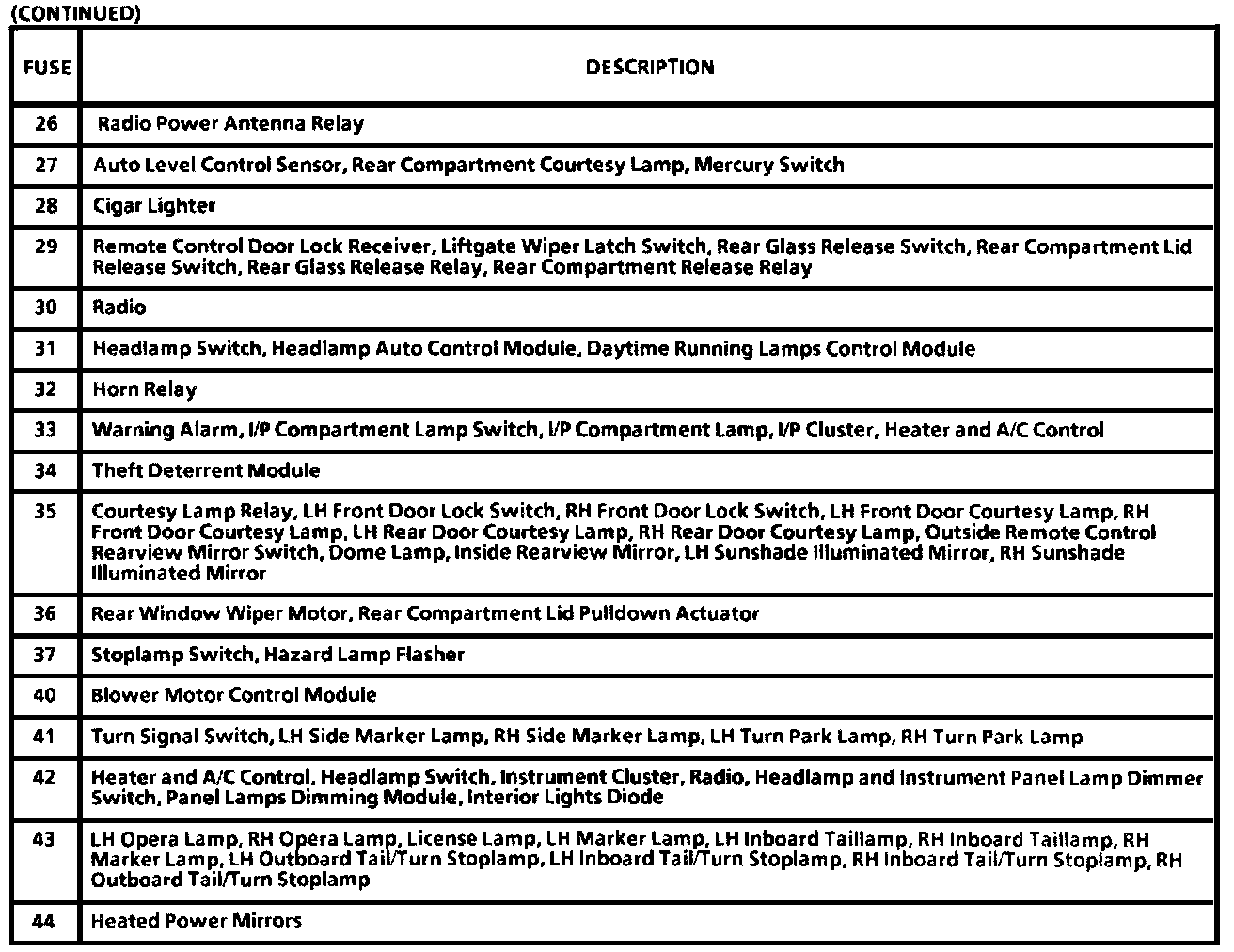 Fuse Data: I/P Fuse Block Label (Part 2 Of 3):