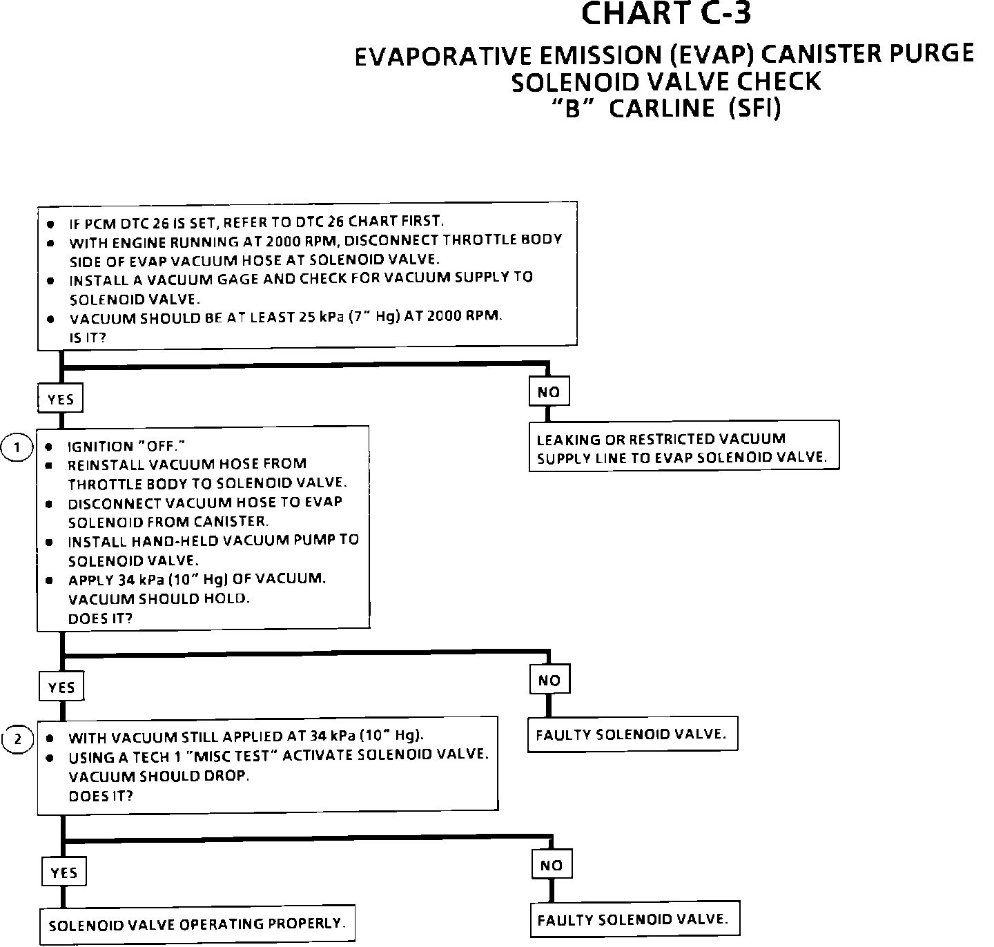 ^ With the ignition "ON", engine "OFF", "output/field service enable" terminal grounded, the EVAP canister purge solenoid valve should be energized.
