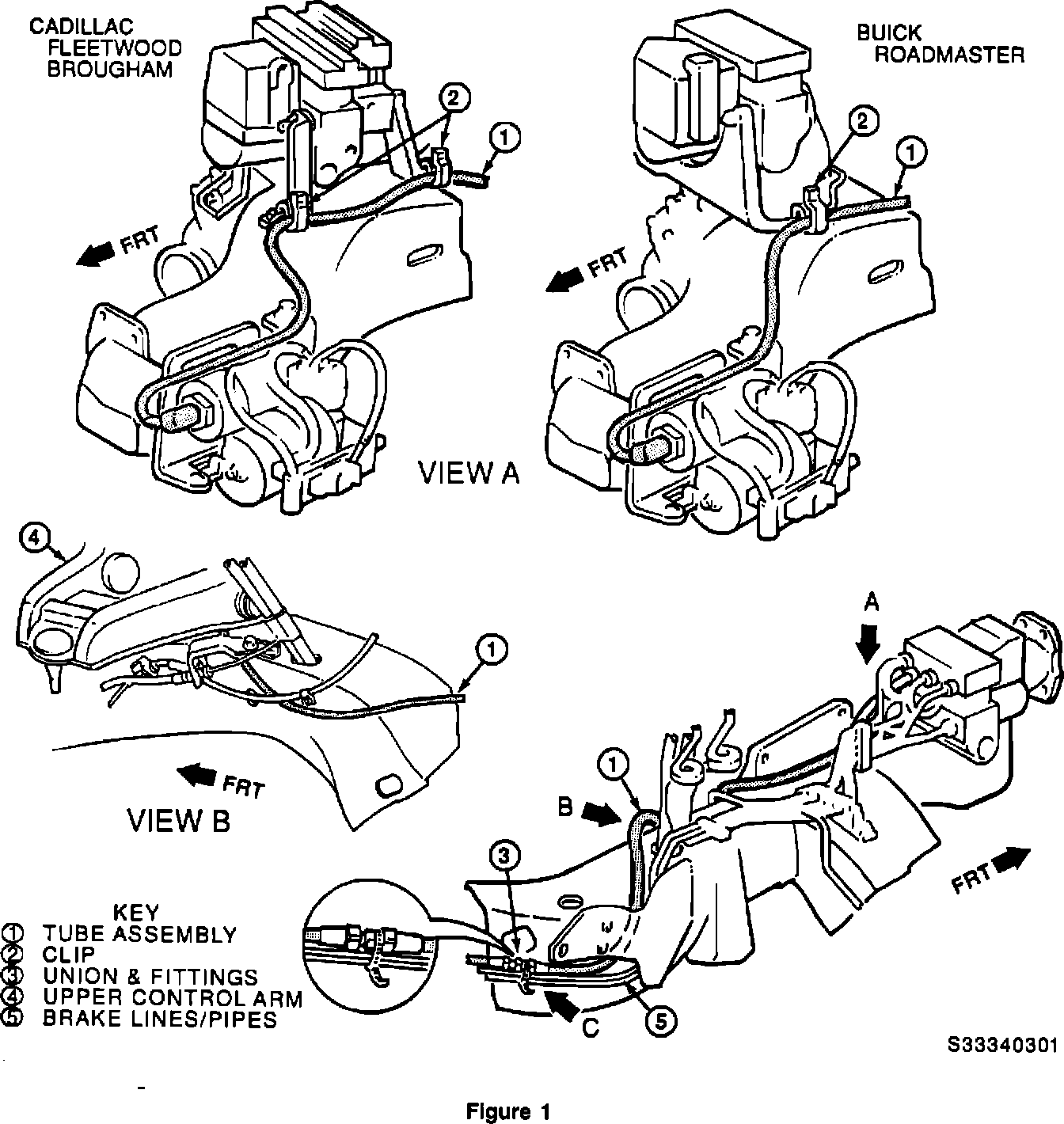 Insure new tube assembly is routed inboard of frame control arm mounting bracket and below upper control arm.