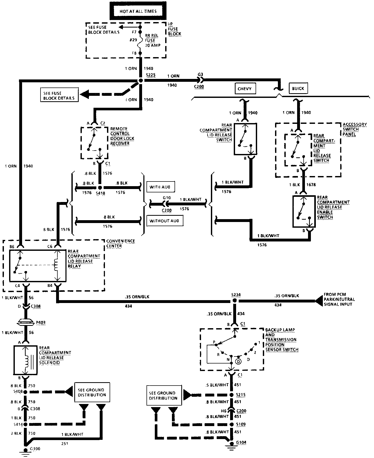Rear Compartment/Rear Window Release: Rear Compartment Lid Release: With Keyless Entry And With SEO:
