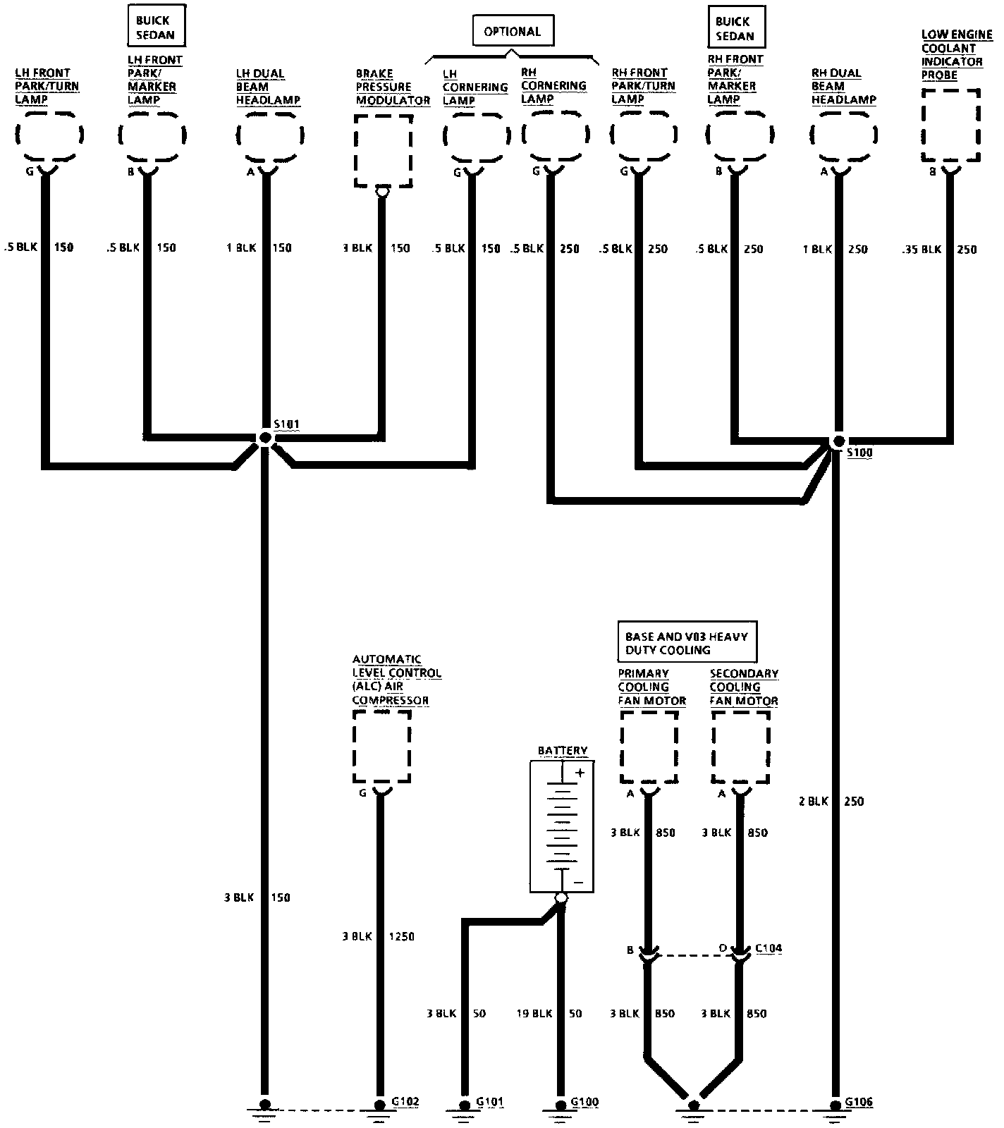 G100, G101, G102 & G106: Battery, Front Lights, Brake Pressure Modulator, Electronic Level Control And Cooling Fans: