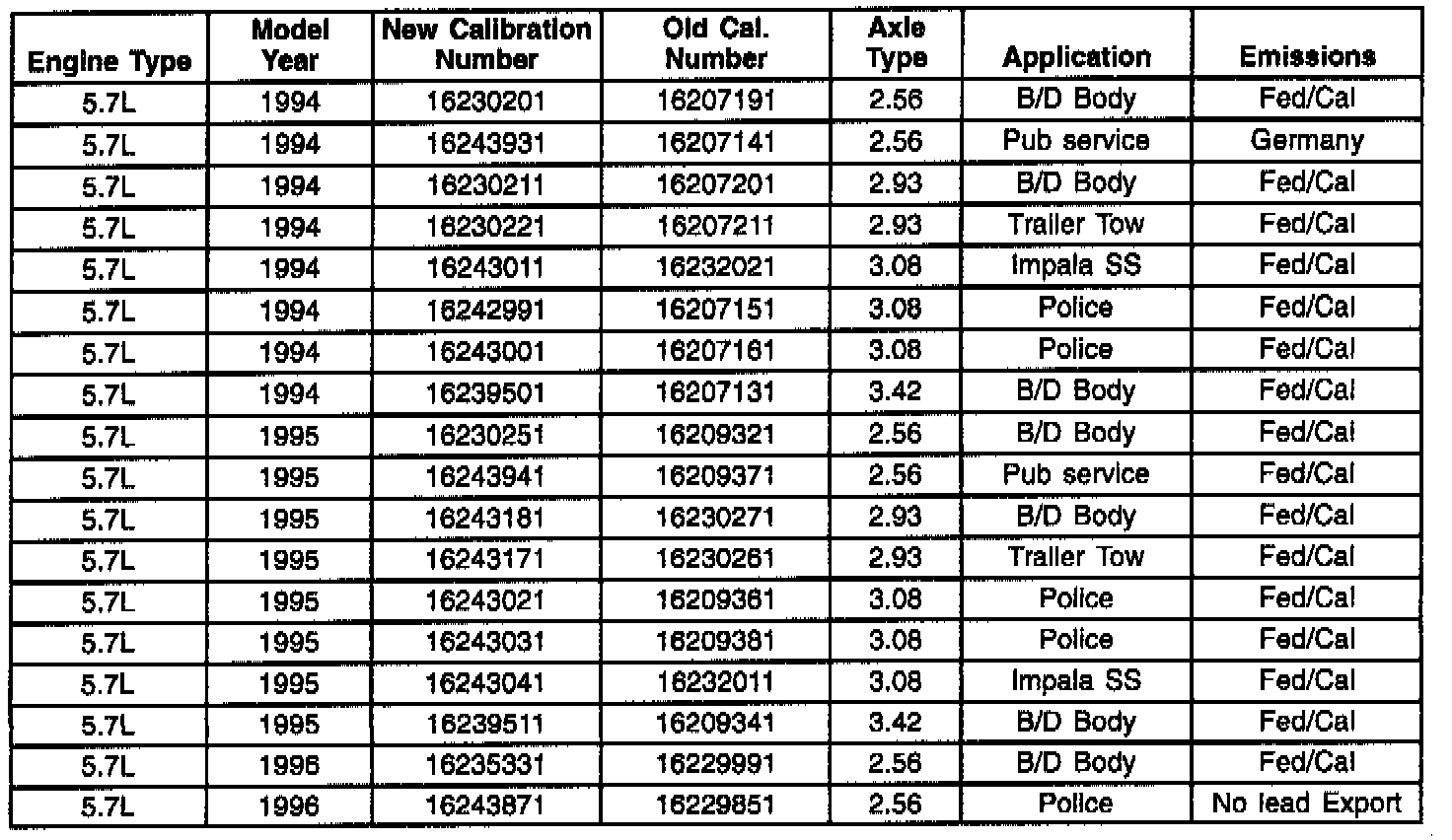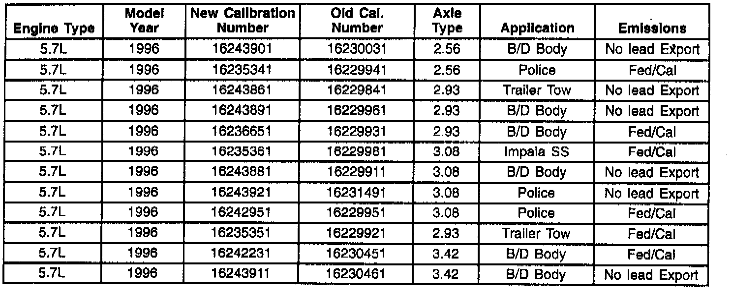 This bulletin is being revised to add the 1996 model year and to update the parts information chart. Please discard Corporate Bulletin Number 57-65-17 (Section 6E - Engine Fuel and Emission).