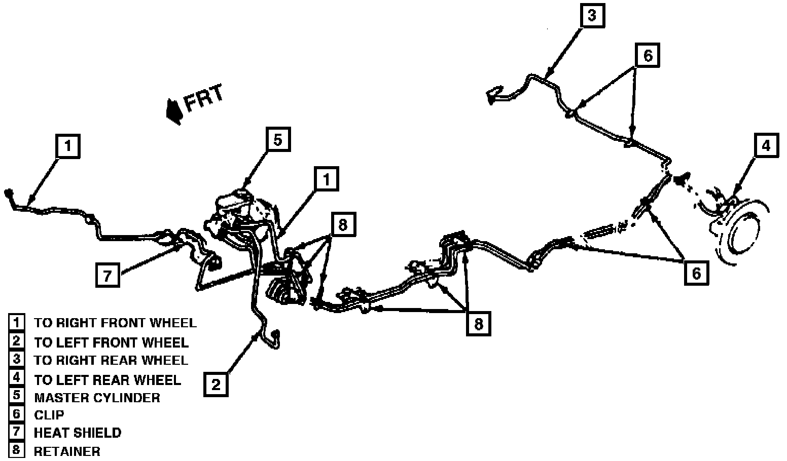 The hydraulic brake lines on this system, however, have been diagonally split front to rear (left front to right rear and right front to left rear) in place of separate lines to the front and rear wheels, Fig. 2.