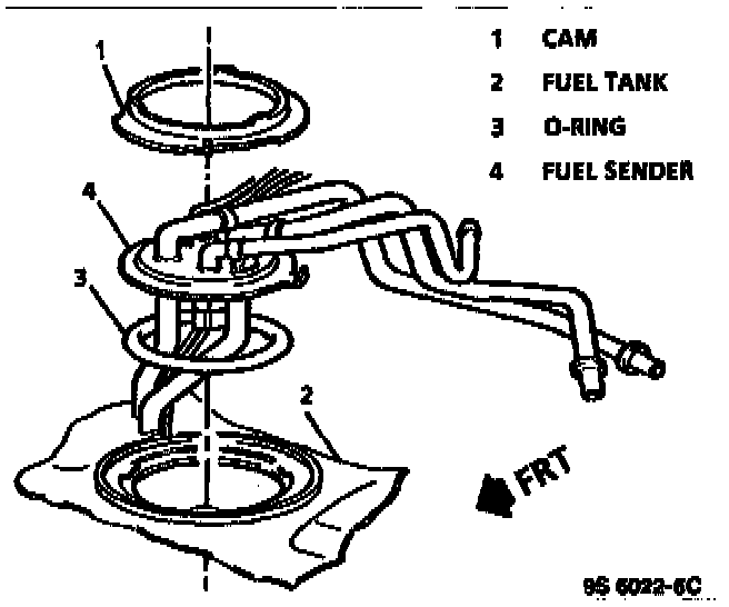 - Using J 35731, remove fuel sender assembly retaining cam, fuel sender assembly and O-Ring from fuel tank. Discard fuel sender assembly O-Ring.