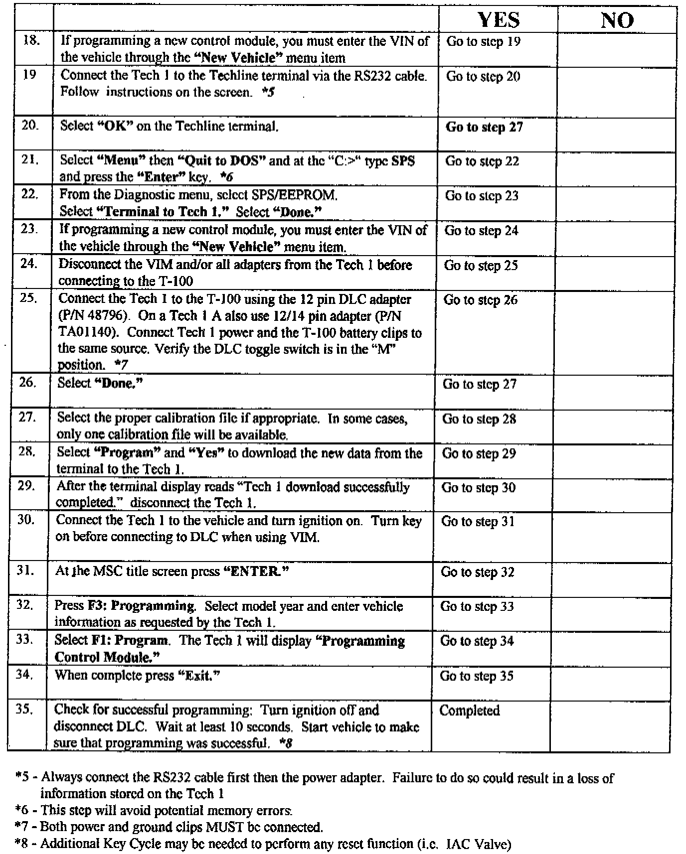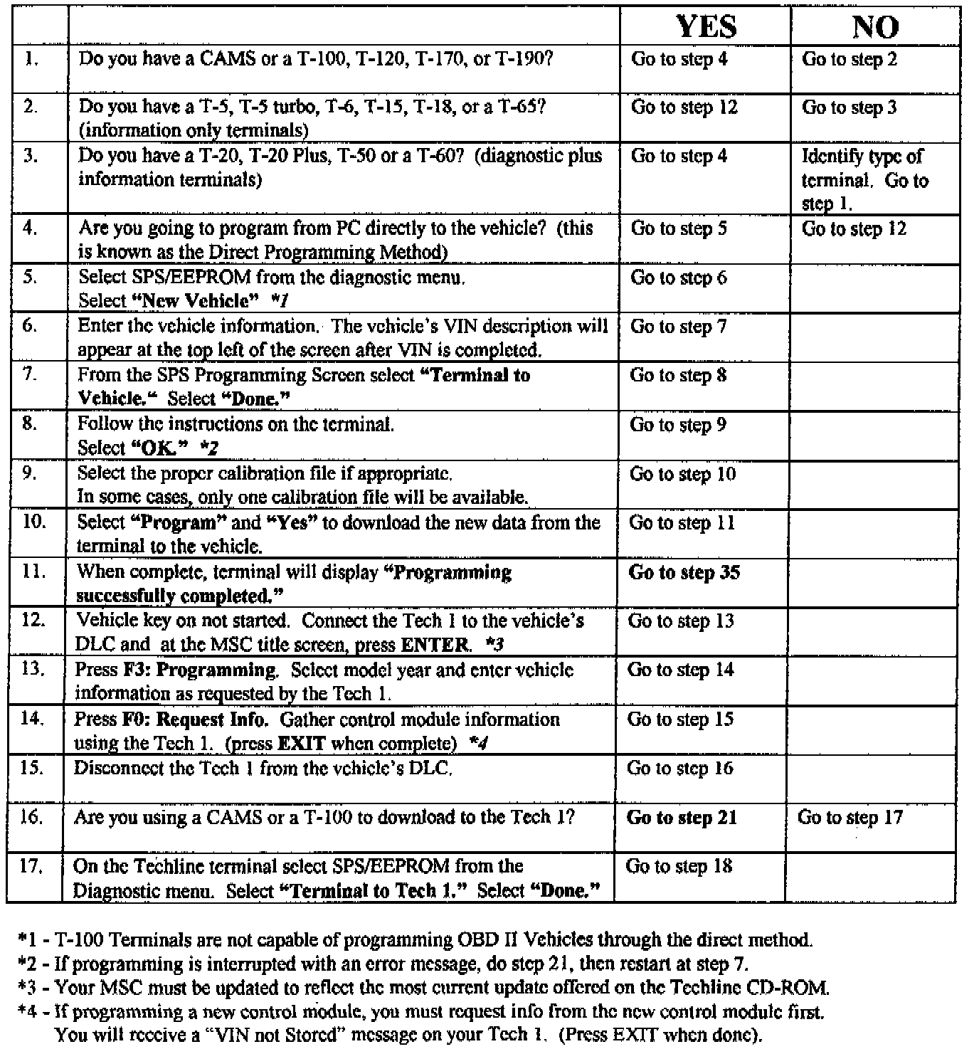 3. IF USING A TECH 1, YOUR MASS STORAGE CARTRIDGE (MSC) MUST BE UPDATED TO REFLECT THE MOST CURRENT UPDATE OFFERED ON THE TECHLINE CD-ROM. DISC 13, 1995 WAS THE FIRST CD-ROM THAT HAD REMOTE PROGRAMMING SUPPORT If your MSC is not updated to reflect the current software version on the Techline Terminal, in some situations the software will not be capable of interpreting the information that is requested from the vehicle.