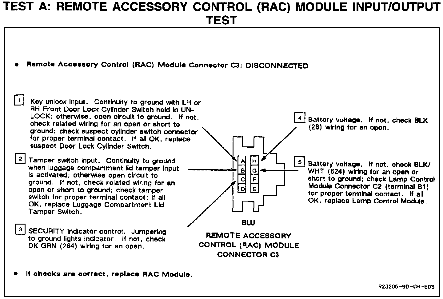 Test A Remote Accessory Control (RAC) Module Input/Output Test