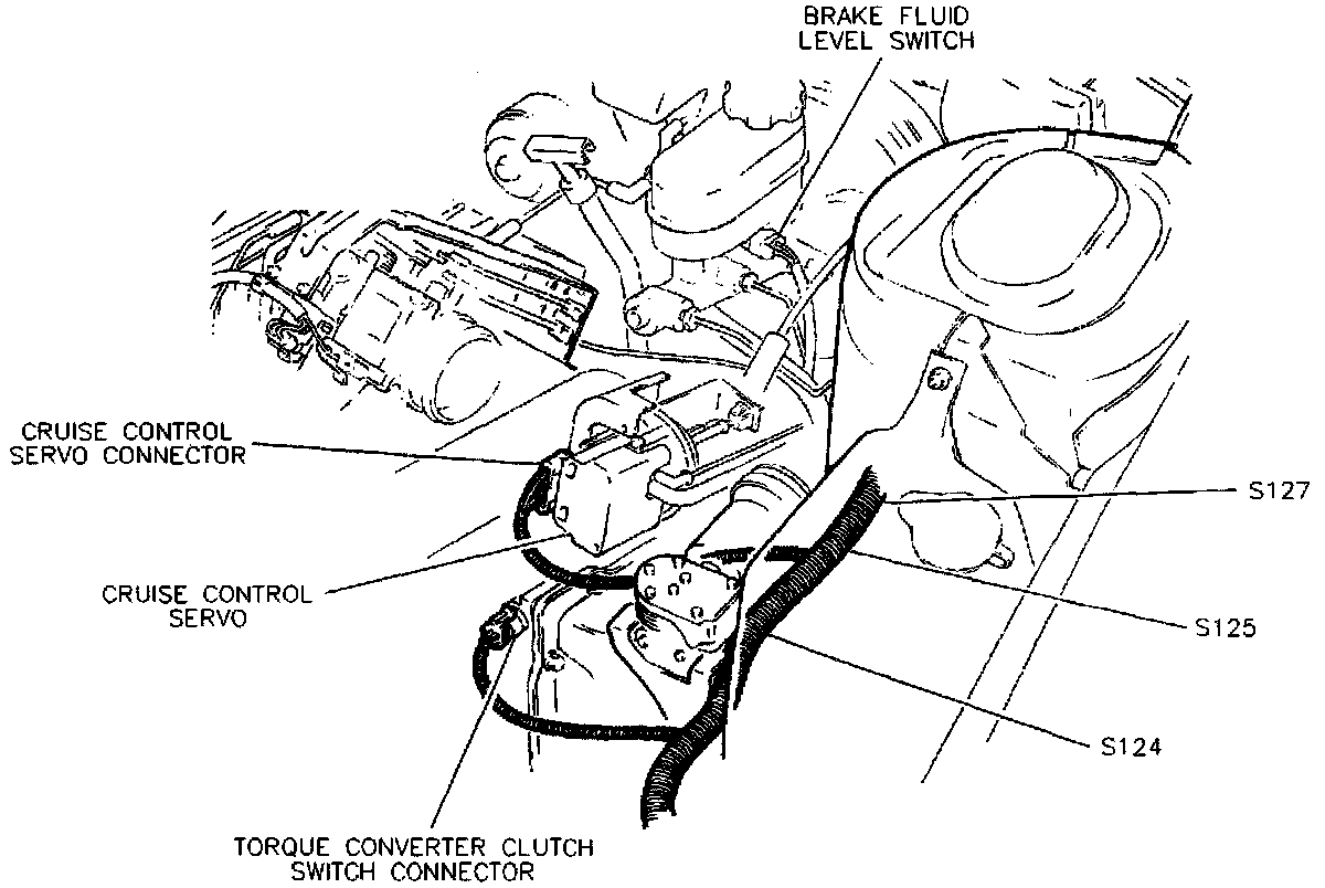 LH Rear Of Engine Compartment, Cruise Control Servo Area: