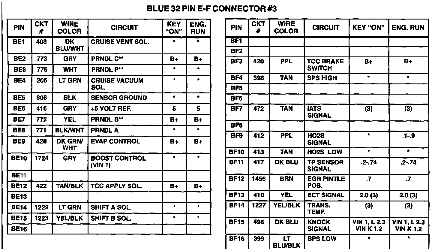 POWERTRAIN CONTROL MODULE (PCM) VOLTAGE CHARTThis PCM voltage chart is for use with a digital voltmeter to further aid in diagnosis. The voltages you get may vary due to low battery charge or other reasons, but they should be very close. The B+ symbol indicates a nominal system voltage of 12-14 volts.