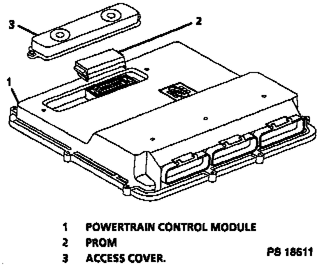 Service of the Powertrain Control Module (PCM) should normally consist of either replacement of the PCM or a PROM change. If the diagnostic procedures call for the PCM to be replaced, the engine "calibrator" (PROM) and PCM should be checked first to see if they are the correct parts. If they are, remove the PROM from the faulty PCM and install it in the new service PCM.