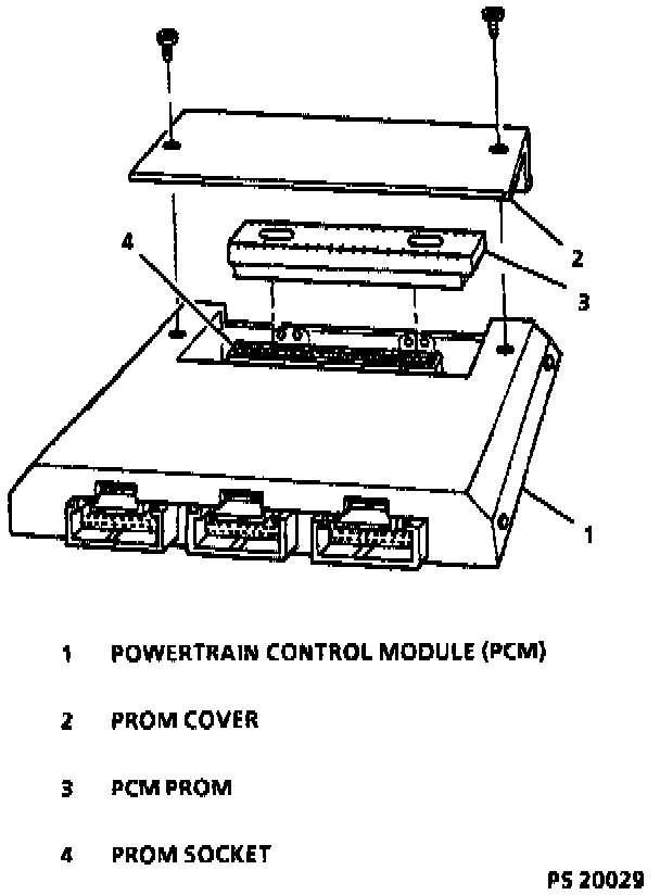 Service of Powertrain Control Module (PCM) should normally consist of either replacement of the PCM or a PROM change. If the diagnostic procedures call for the PCM to be replaced, the engine "calibrator" (PROM) and PCM should be checked first to see if they are the correct parts.