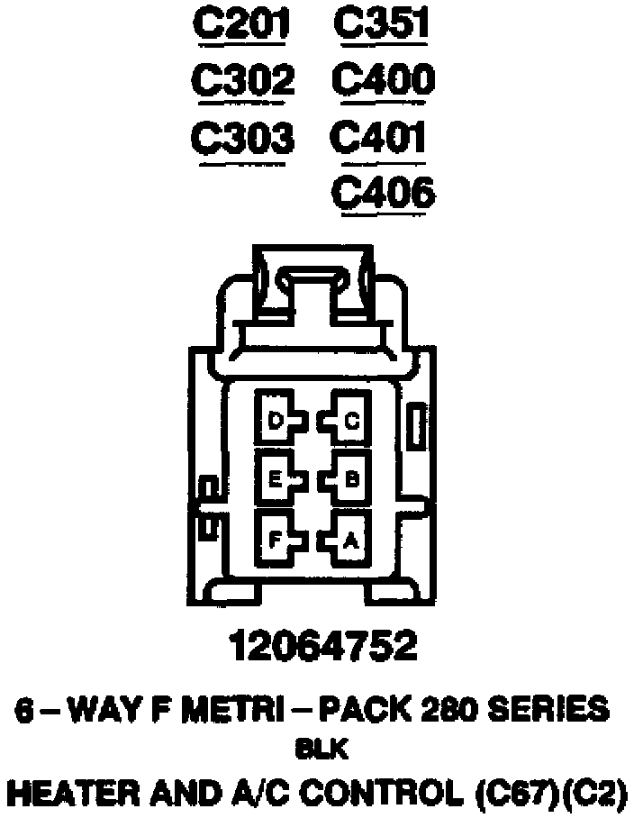 C201, C302, C303, C351, C400, C401 & C406: Heater & A/C Control (C67) (C2):