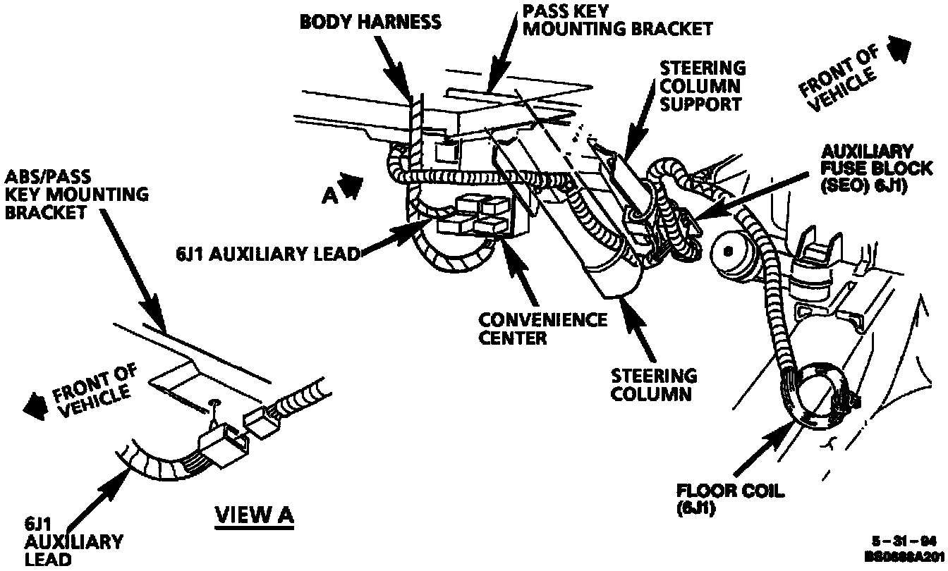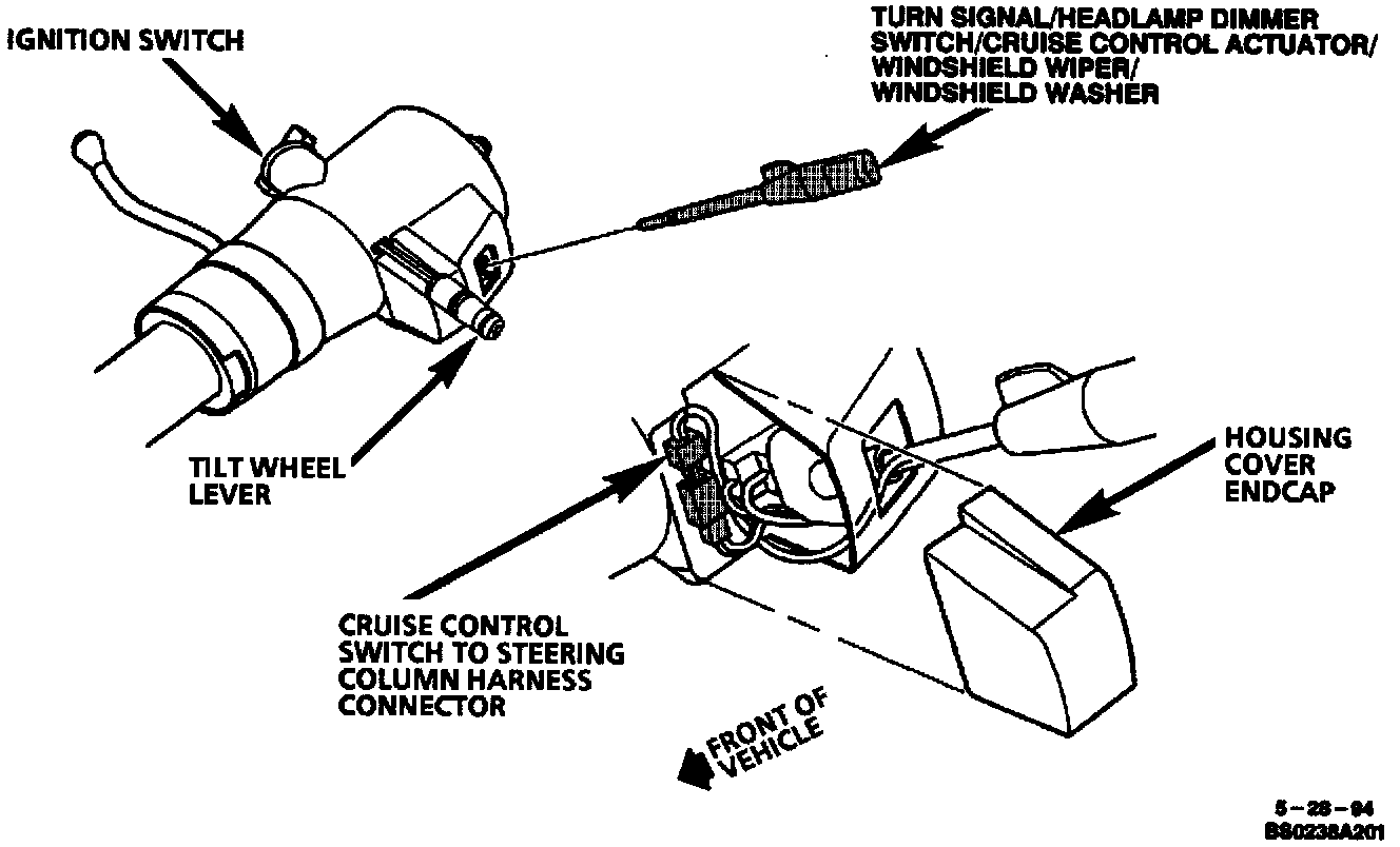 Upper LH Side Of Steering Column: