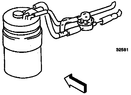 Gasoline vapors from the fuel tank flow into the tube labeled tank. Any liquid fuel goes into a reservoir in the bottom of the EVAP canister to protect the integrity of the carbon bed above. These vapors are absorbed into the carbon. The canister is purged when the engine is running and commanded by Powertrain Control Module (PCM). Ambient air is allowed into the canister through the air tube in the top of the canister. The air mixes with the vapor and the mixture is drawn into the intake manifold.