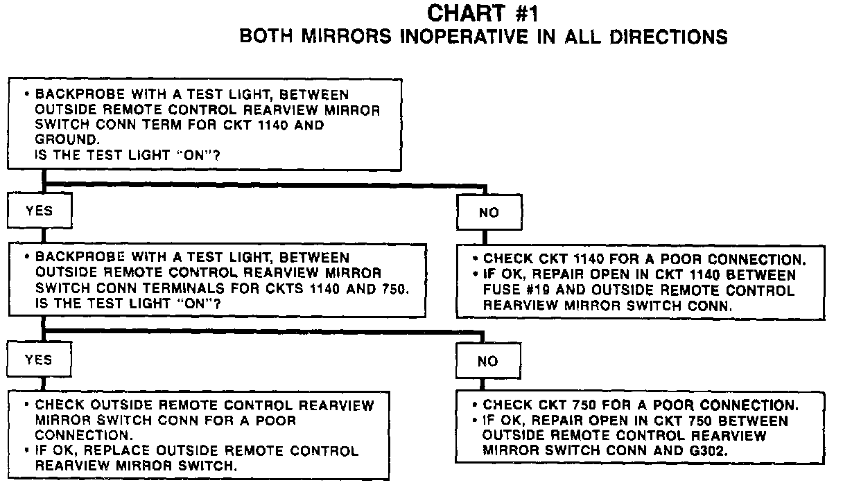 Chart #1 Both Mirrors Inoperative In All Directions: