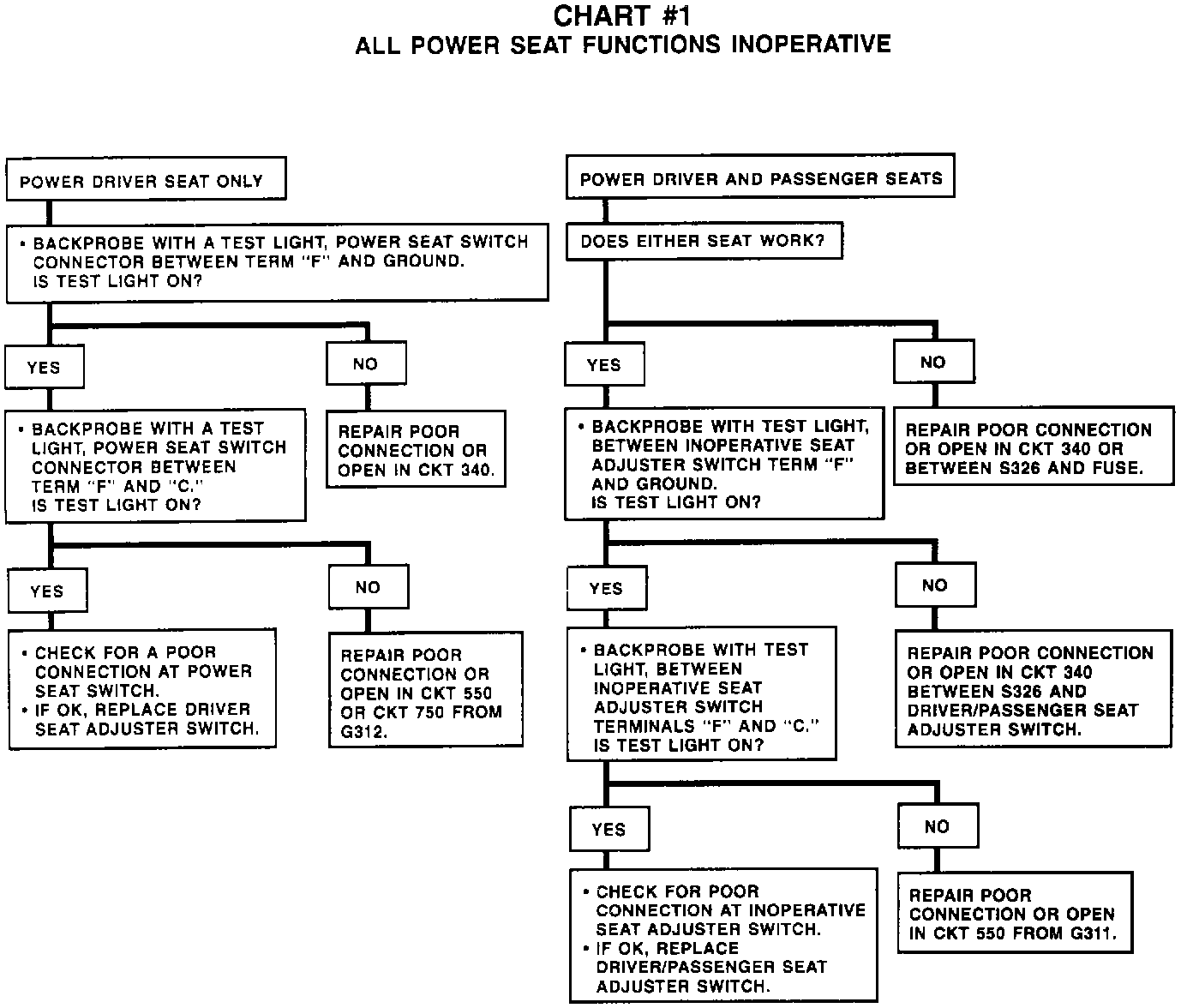 Chart #1 All Power Seat Functions Inoperative: