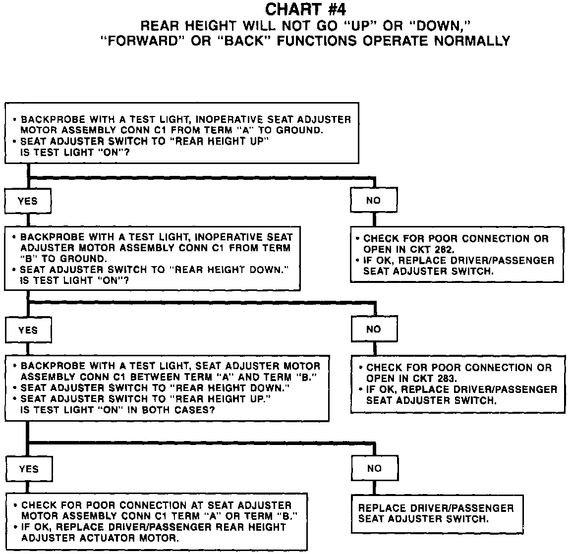 Chart #4 Rear Height Will Not Go UP/DOWN, FORWARD/BACK Functions Operate Normally: