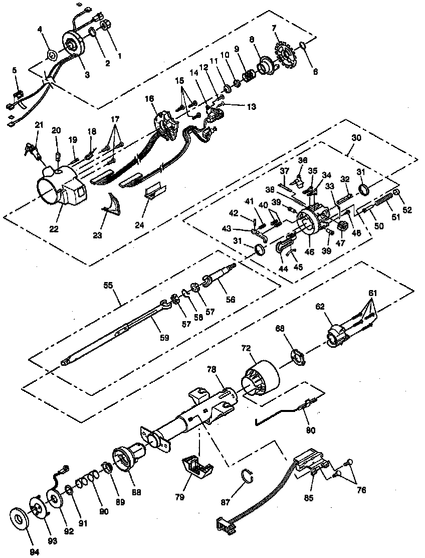 Exploded View Of Tilt Steering Wheel W/Floor Shift: