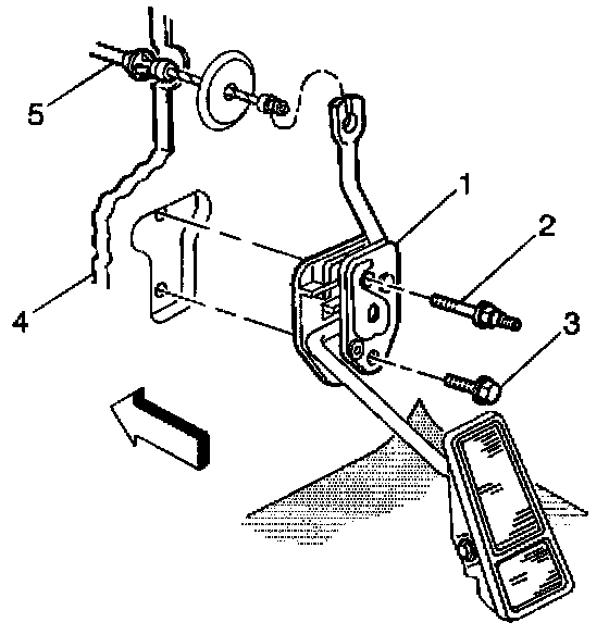 1. Install the accelerator pedal (1) to the bulkhead (4).