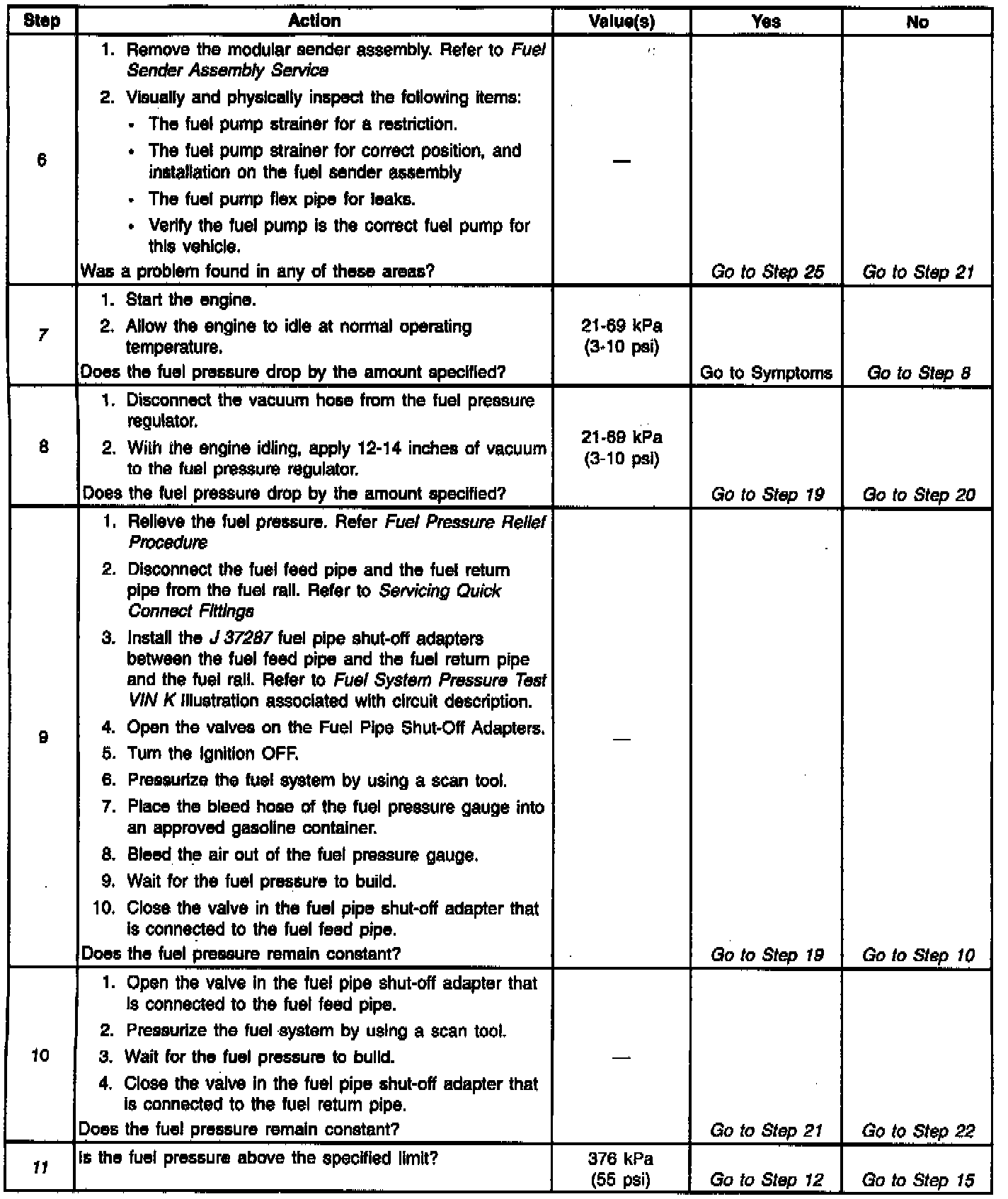 12. This test determines if the high fuel pressure is due to a restricted fuel return pipe or if the high fuel pressure is due to a faulty fuel pressure regulator.