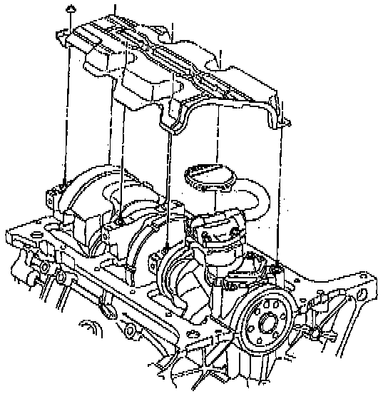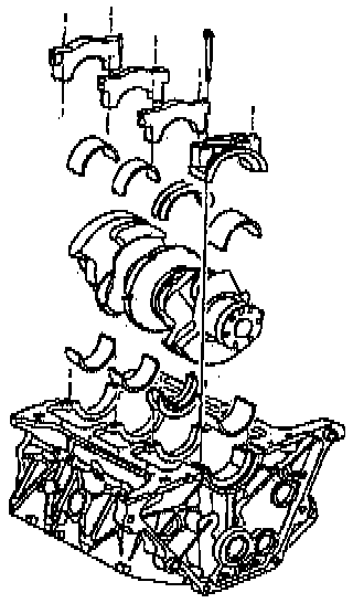 CAUTION: In order to prevent the possibility of cylinder block or crankshaft bearing cap damage, the crankshaft bearing caps are tapped into the cylinder block cavity using a brass, lead, or a leather mallet before the attaching bolts are installed. Do not attach the bolts to pull the crankshaft bearing caps into the seats. Failure to observe this information may damage a cylinder block or a bearing cap.