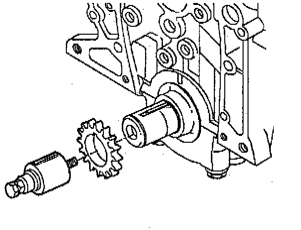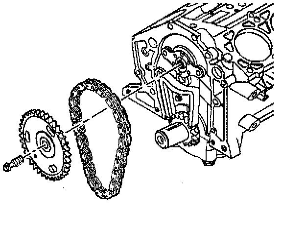 e. Hold the camshaft sprocket with the chain hanging down and install the chain to the crankshaft gear.