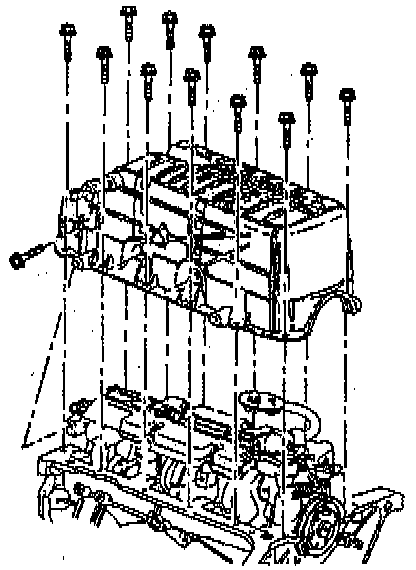 CAUTION: Failure to tighten vertical bolts before the diagonal bolts may cause an oil leak.