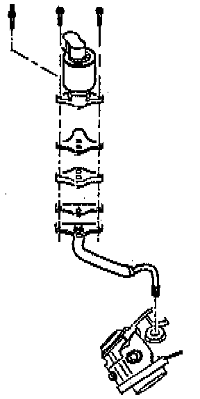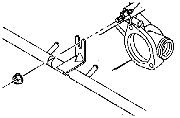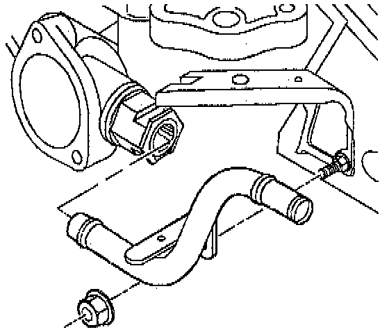 g. Install the thermostat bypass pipe retaining bolt, nut, and screw.
