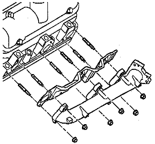 e. Install the exhaust crossover pipe retaining nuts. Tighten the nuts to 25 Nm (18 ft. lbs.).