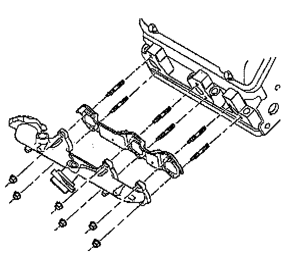 c. Install the exhaust manifold nuts. Tighten the exhaust manifold nuts to 16 Nm (12 ft. lbs.).