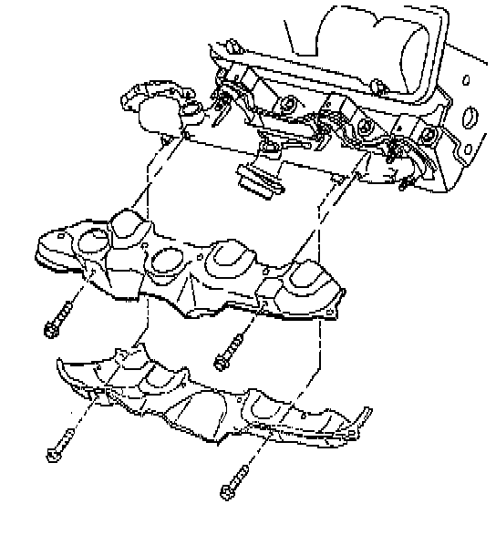 e. Install the exhaust manifold heat shield nuts. Tighten the exhaust manifold heat shield nuts to 10 Nm (89 inch lbs.).