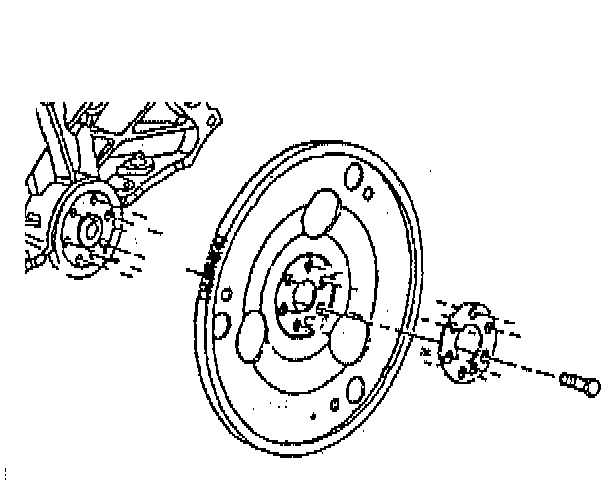c. Install the flex plate bolts. Tighten the bolts to 83 Nm (61 ft. lbs.).