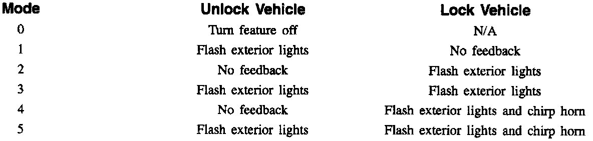 RAV allows the vehicle to provide feedback to the driver that the vehicle has received the command from the transmitter. The following modes may be selected by the driver.Remote Activation Verification: