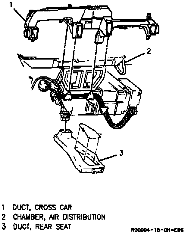 The ducting is the network of tubing used to get conditioned air from the A/C module to the instrument panel and rear seat outlets. There are two major ducts that are attached to the air distribution chamber.