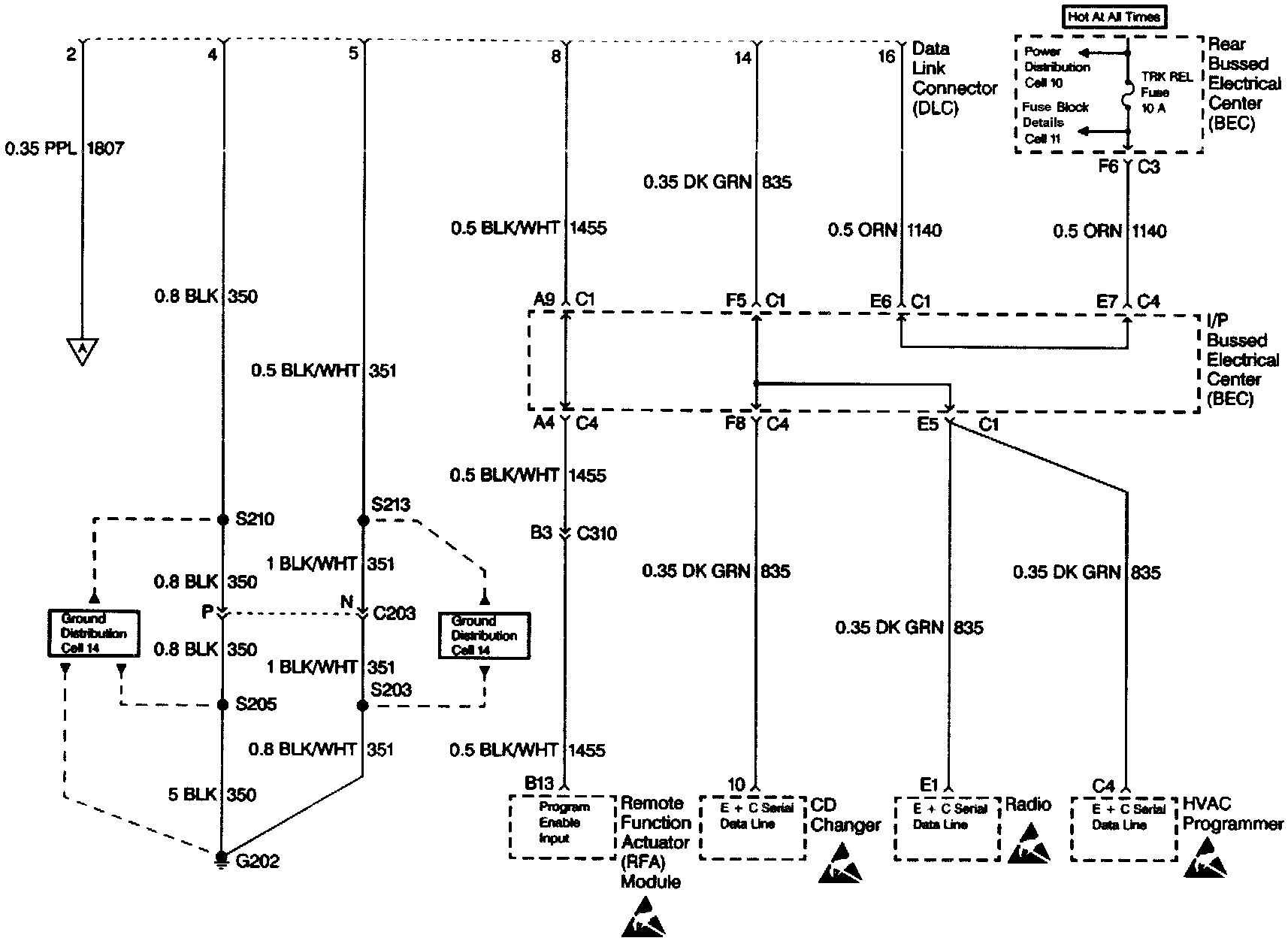 Data Link Connector (DLC): Power, Ground And E & C Serial Data Line: