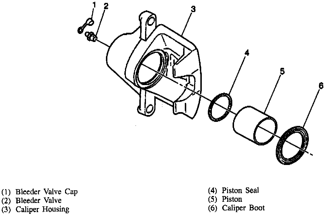 5. Bleeder valve cap and bleeder valve from caliper housing.