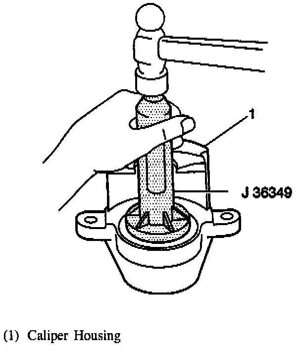 5. Seat caliper boot in caliper housing counterbore using J 36349.