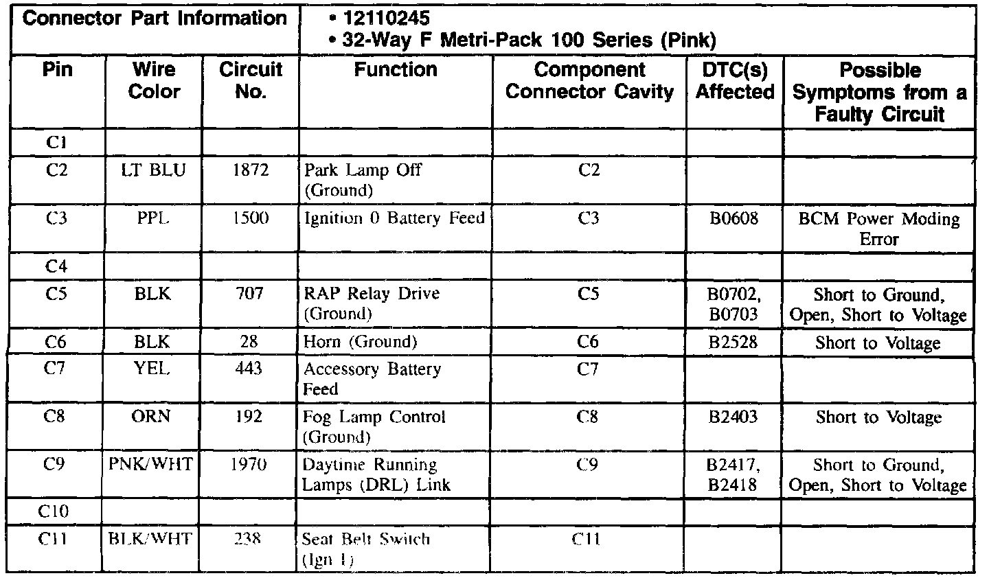 Body Control Module (BCM): C1 (Part 2 Of 2):