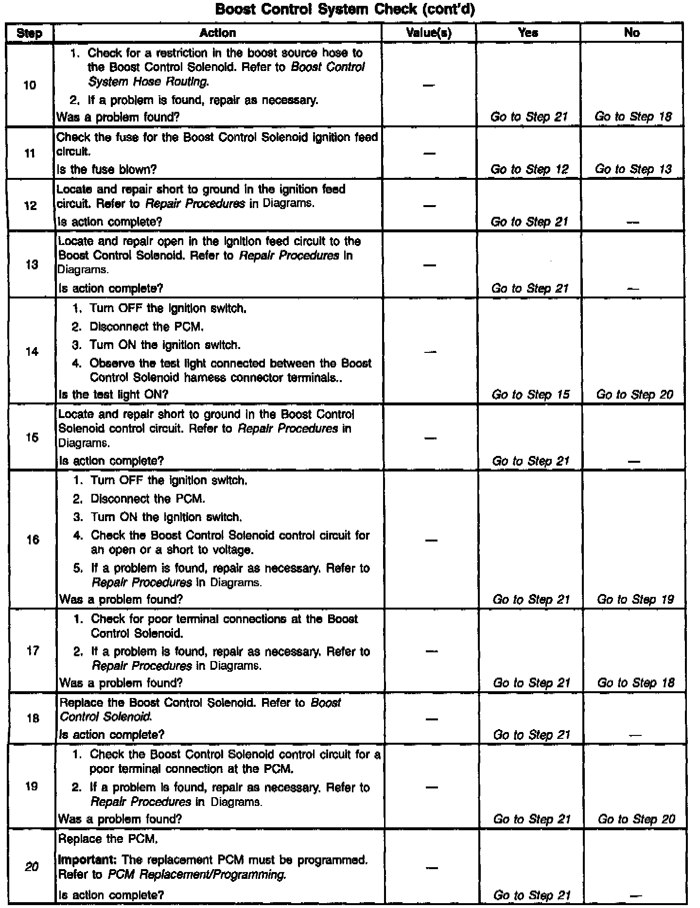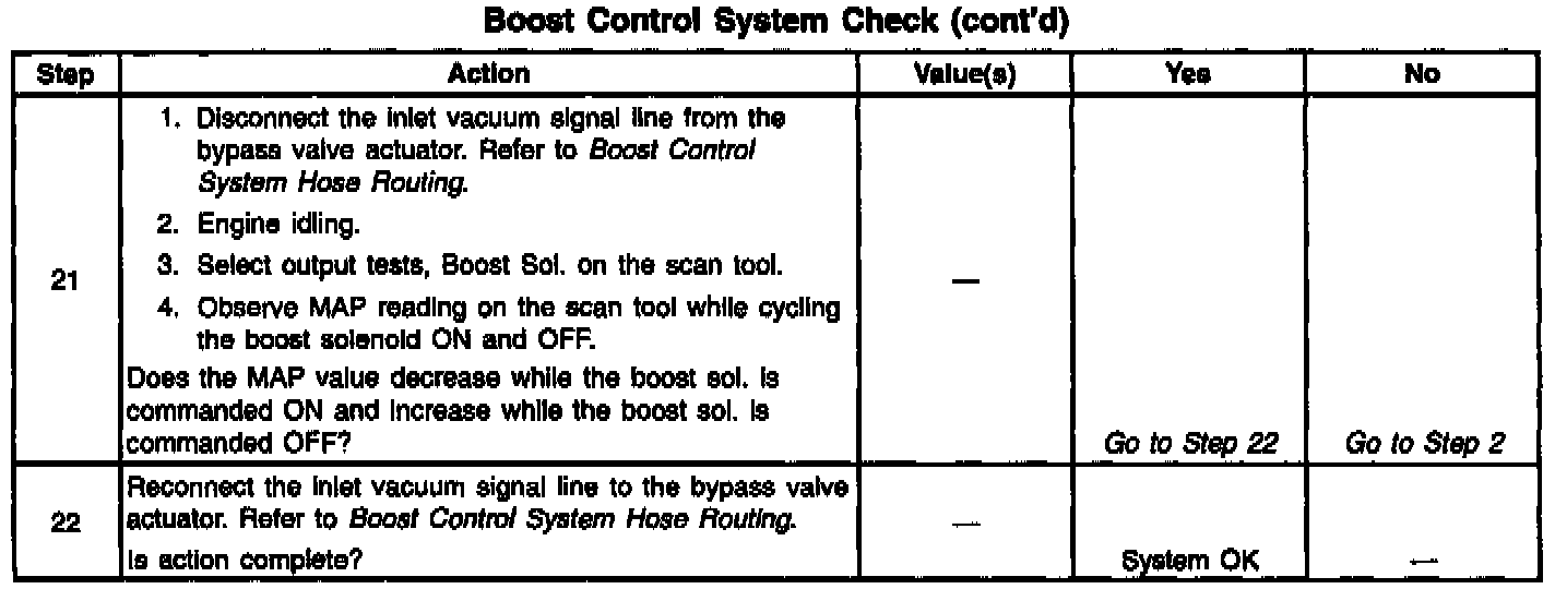 If the Boost Control System Check has been performed and no electrical or vacuum related fault is noted, check for the following conditions: