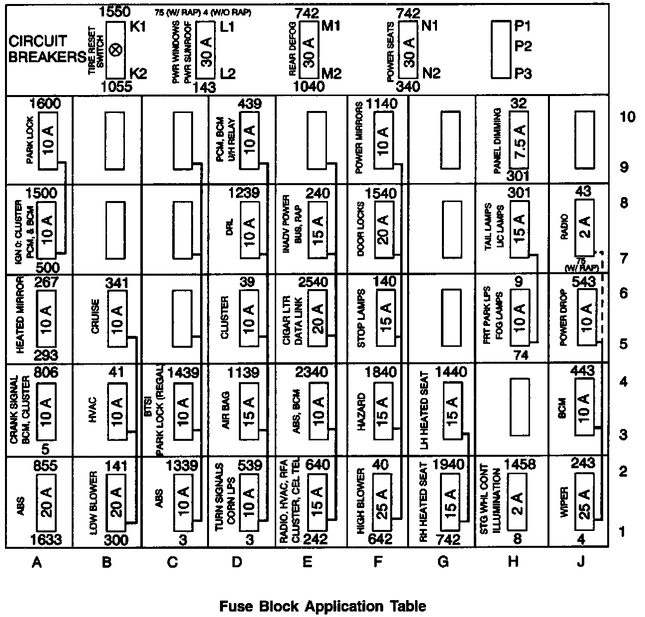 Fuse Block Application Table: