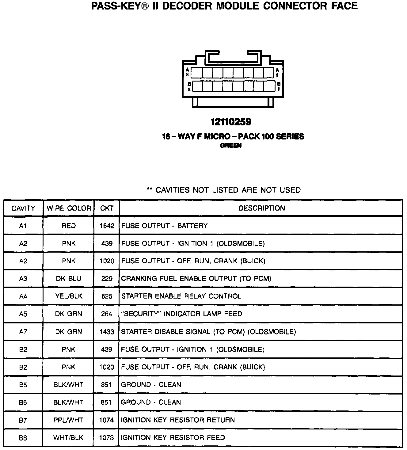 Pass-Key II Decoder Module Connector Face: