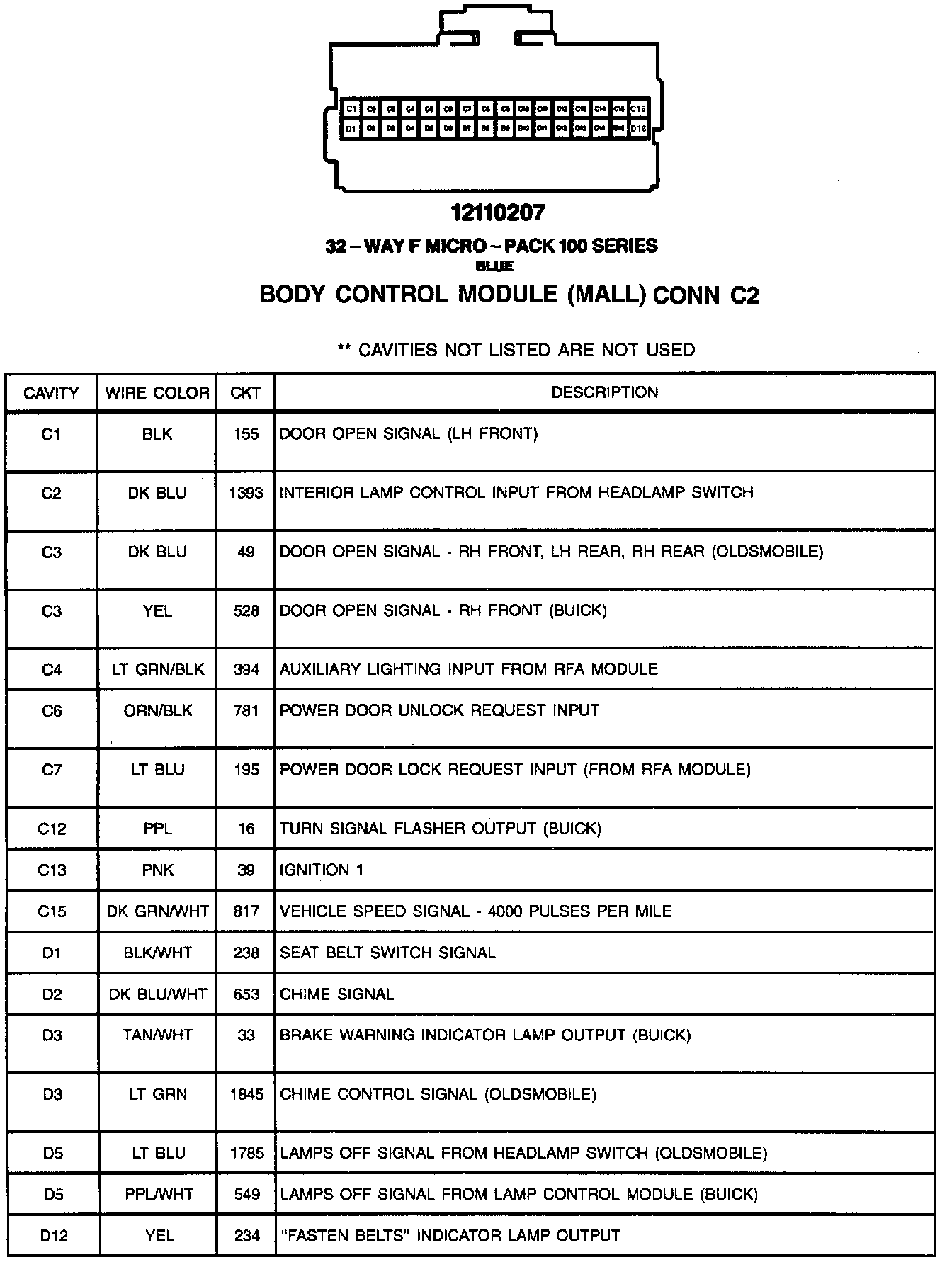 Body Control Module (MALL) CONN C2: