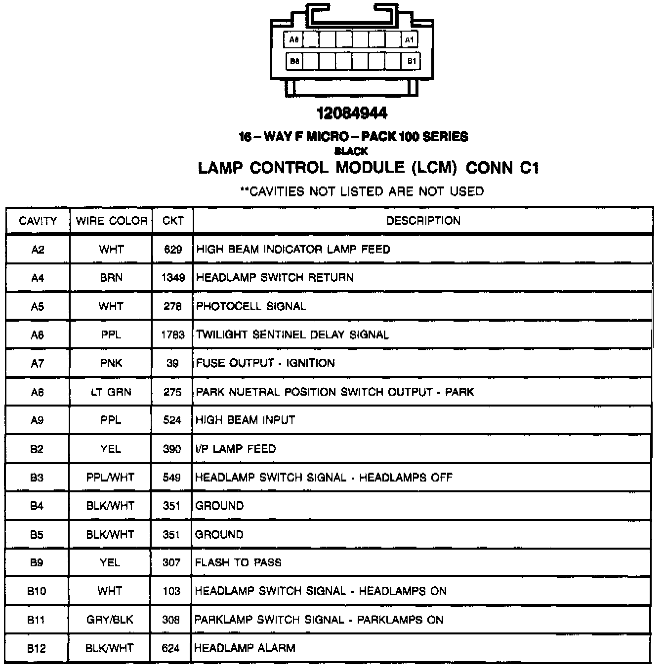 Lamp Control Module (LCM) CONN C1: